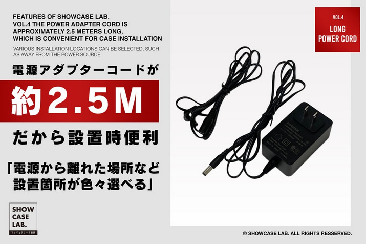 ショーケースラボのケースの特徴の1つとして「電源アダプターのコードが長い」という点があります。